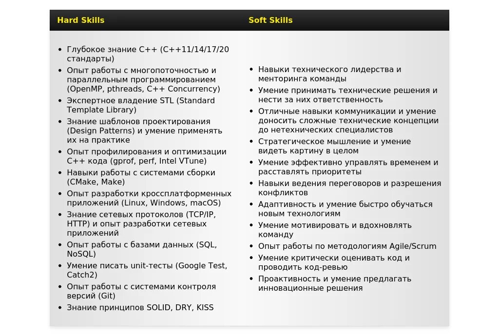 - Укажите вашу специализацию: Например, "Ведущий инженер-программист C++ (разработка высоконагруженных систем)".