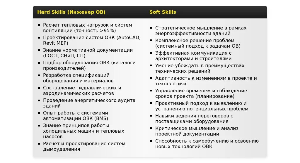- Ошибка 2: Перечисление всех навыков без конкретики: "Знаю AutoCAD, Revit, Microsoft Office". Лучше: "Уверенно работаю в AutoCAD и Revit, использую их для разработки и визуализации проектов ОВК любой сложности."