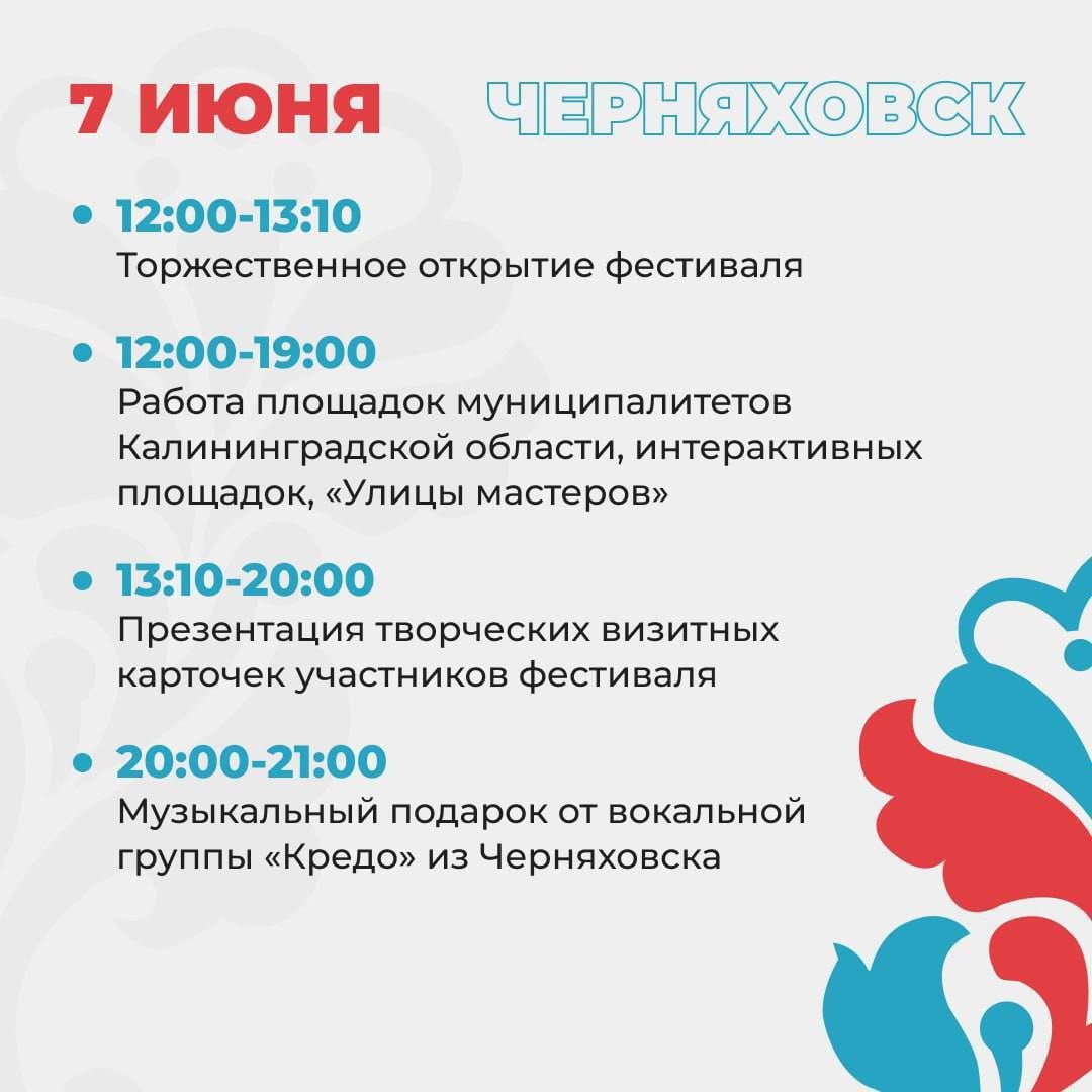 🌼 Приглашаем на областной фестиваль «Цветы России» в Черняховске! 7 и 8 июня в парке Победы Светлогорск и другие муниципалитеты представят цветочные композиции из живых растений. 🌿 Подробная программа – в карточках. #калининградскаяобласть