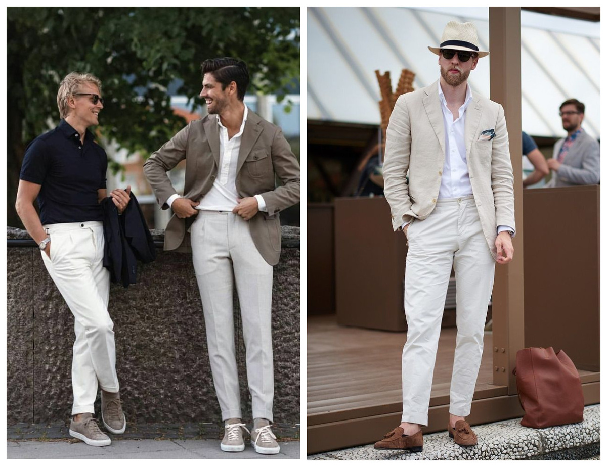 Стремление выглядеть чуть более презентабельно — это абсолютно нормально и даже похвально. И сегодня под раздачу попадает летний стиль, ибо актуально. Ключевой момент! Облагораживать будем смарт кэжуал. Почему? Классика, безусловно, статусна, но в реалиях обычной жизни часто выглядит неуместно. Да и качественный костюм — удовольствие не из бюджетных. Тогда как смарт кэжуал — это золотая середина. Ткани — только натуральные. Это вопрос не только комфорта, но и восприятия. Синтетика часто проигрывает скромному хлопку или льну по части благородства внешнего вида. Основа — база (о базе мы уже говорили и много). Чистые цвета, строгие силуэты, чёткие линии — вот что подсознательно ассоциируется с дорогим гардеробом. Это и есть та самая "классическая основа". Допустимы графические принты (полоска, клетка, ромб), но избегайте кричащих рисунков — на бюджетных вещах они часто смотрятся дешево. Можно один логотип, если он уместен, а вот логомания мимо. Рубашка с закатанными рукавами — must have.