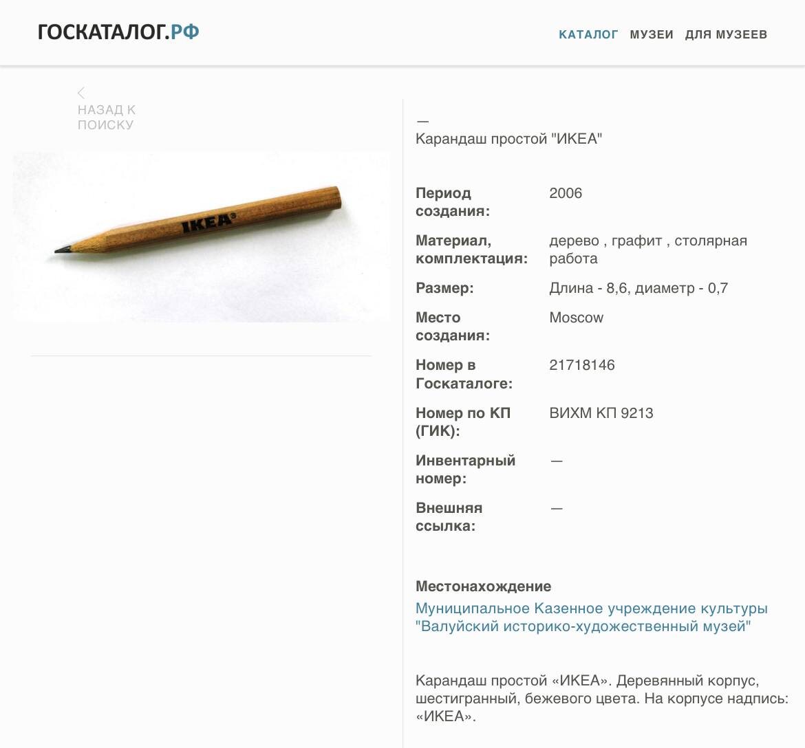 В Госкаталоге музейного фонда России обнаружили карандаш из IKEA