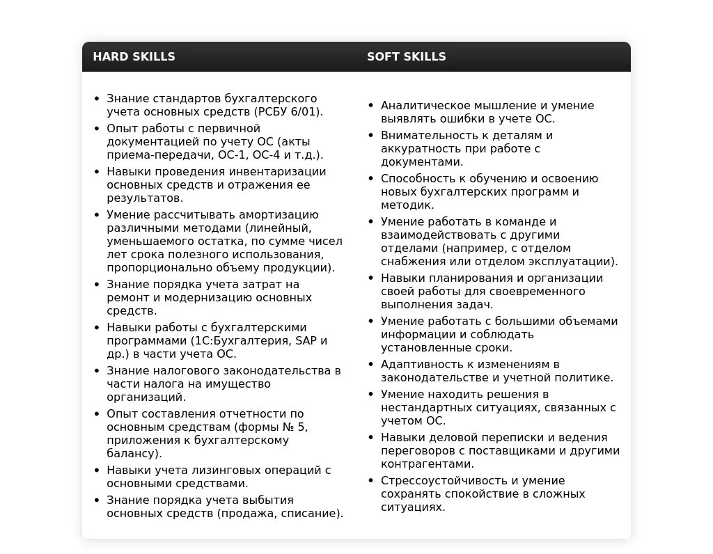 - Высокий уровень: Ведущий бухгалтер по основным средствам