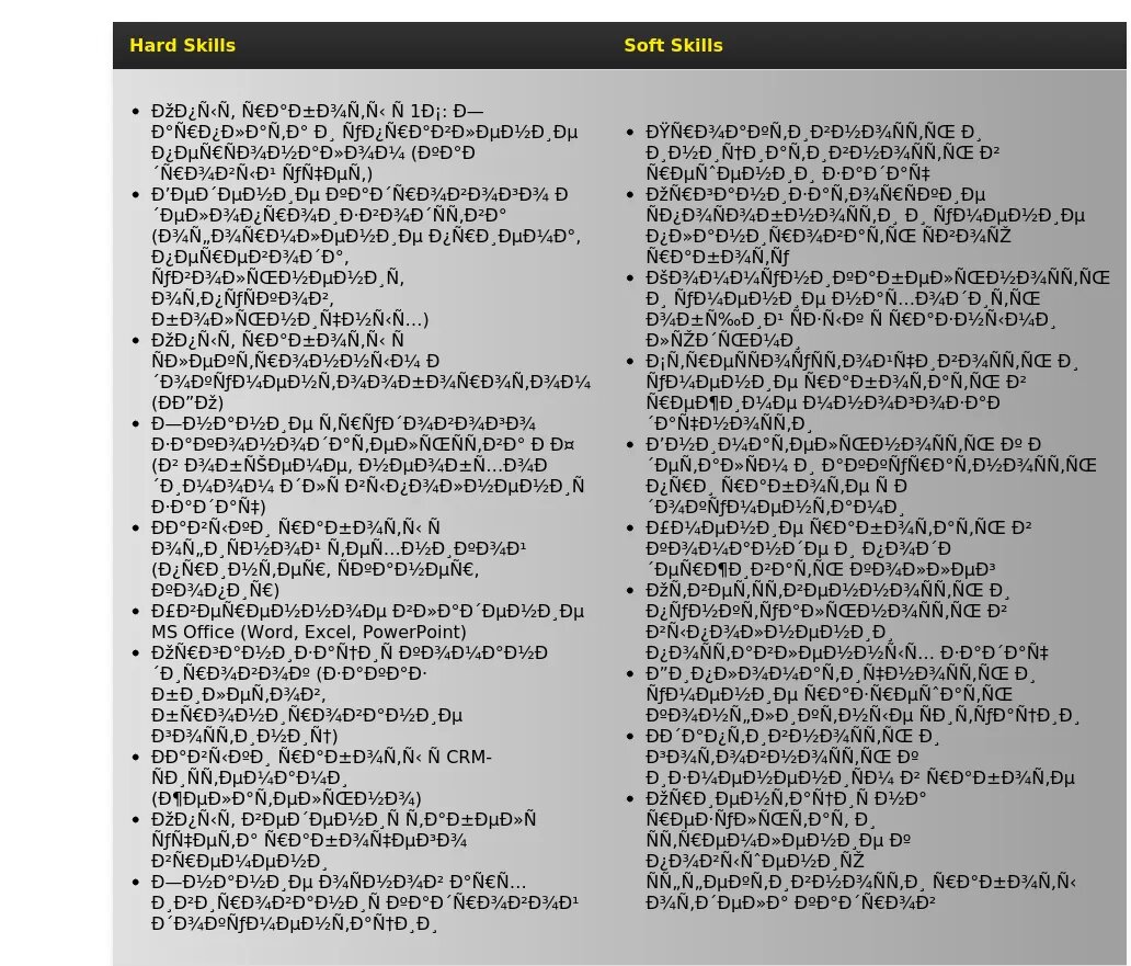 - Слишком общие фразы: Вместо "Ответственный и коммуникабельный" лучше написать "Обладаю развитыми коммуникативными навыками, что позволяет эффективно взаимодействовать с коллегами и клиентами".