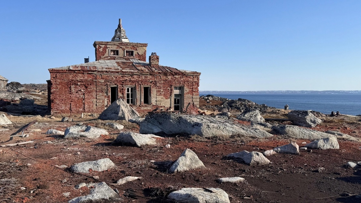 Рядом с крестом — руины советской метеостанции. Облупившаяся краска, ржавые балки, уходящие в небо. В 30-е годы сюда везли технику на оленьих упряжках. Люди жили в брезентовых палатках при -40°C, измеряли ветер. Не покорять — осваивать. Не брать — от
