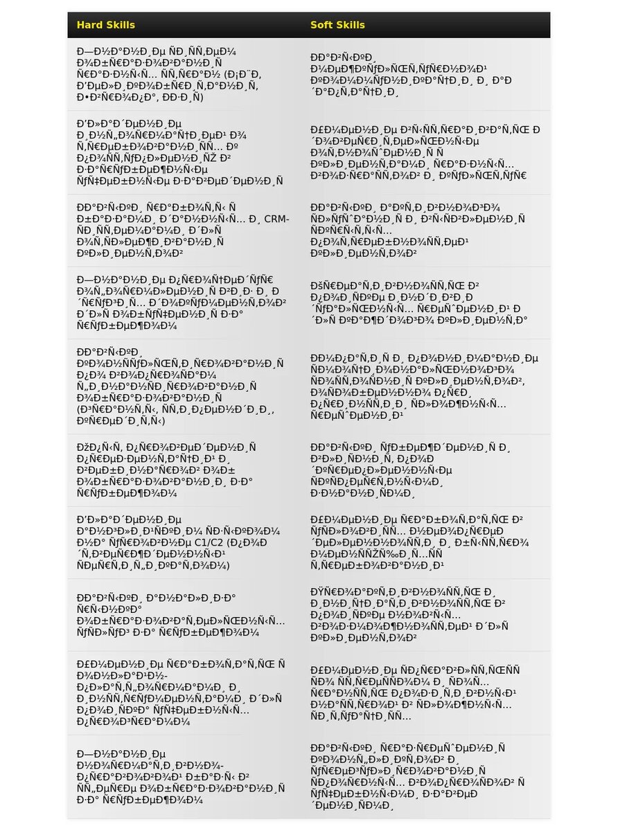 - Разделите навыки на категории (например, профессиональные навыки, языки, компьютерные навыки).