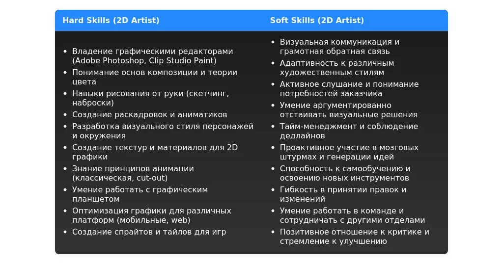 Для начинающих 2D-художников важно подчеркнуть свой потенциал и стремление к развитию. Сделайте акцент на образовании, пройденных курсах и личных проектах.