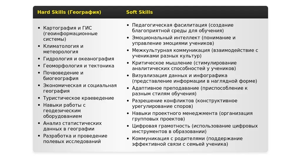Помимо явных требований, в описании вакансии могут содержаться и "скрытые" требования, которые явно не указаны, но подразумеваются. Например, если школа позиционирует себя как инновационное учебное заведение, вероятно, от учителя географии ожидают владение современными образовательными технологиями и готовность к внедрению новых методик.