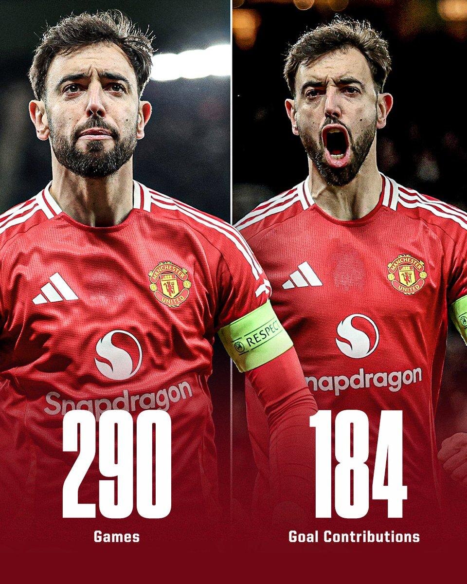 Показатели Бруну Фернандеша в "Манчестер Юнайтед": 290 матчей, 184 результативных действия. При этом речь о полузащитнике 🤌