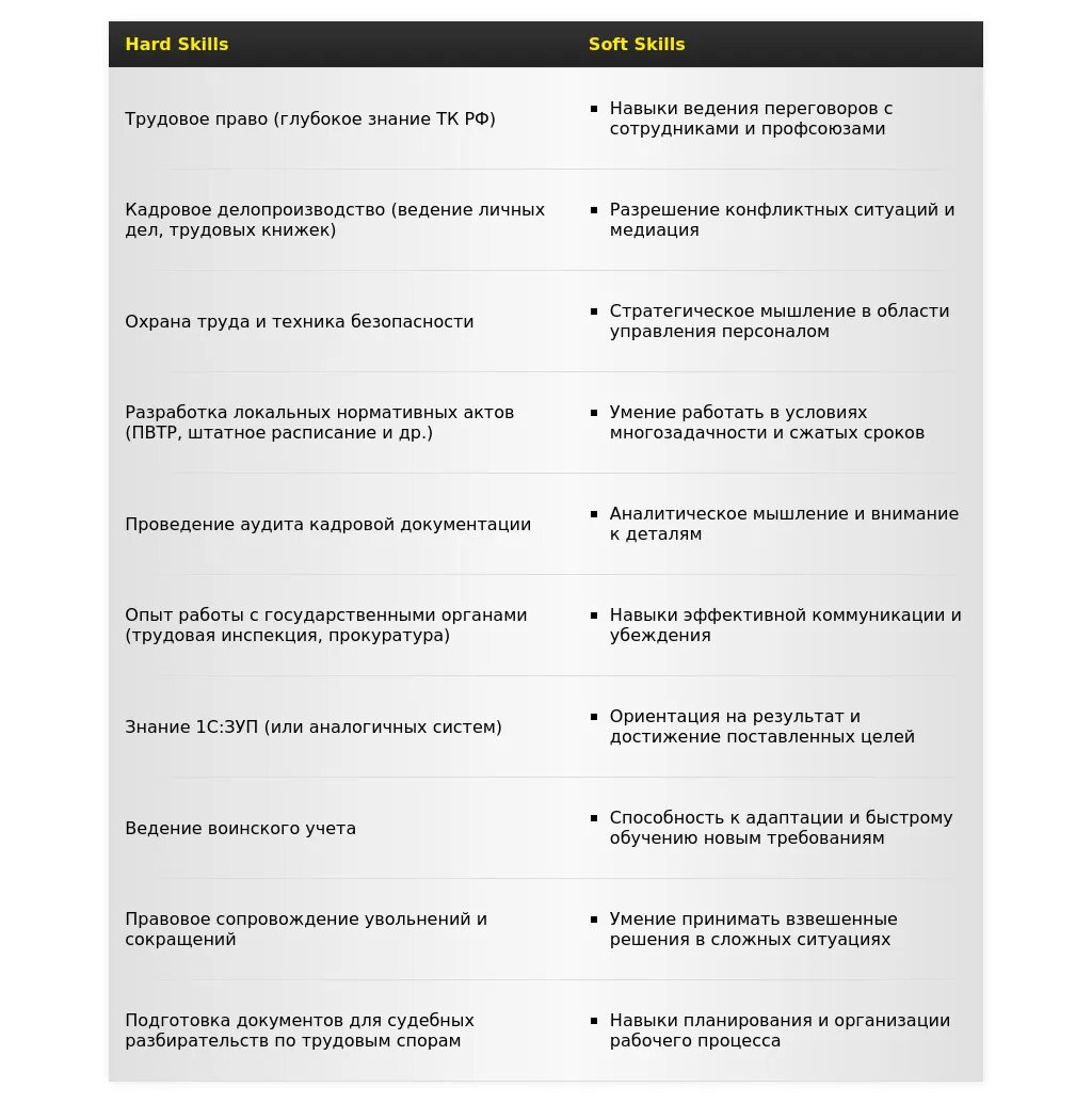 - Юрист по трудовому праву и кадровому делопроизводству - Подробное описание навыков.