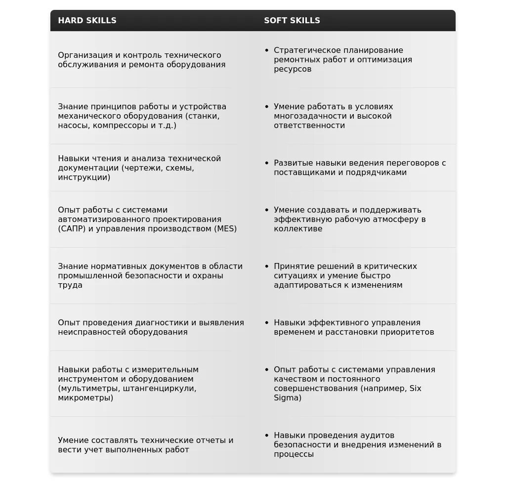 - актуальные требования работодателей и востребованные навыки для начальника механического участка