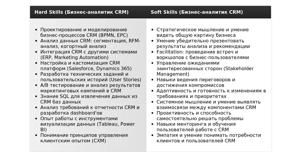 Адаптация раздела "Навыки" для бизнес-аналитика CRM