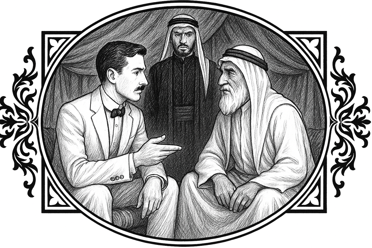 — Беспокойство? — Шейх усмехнулся беззвучно. — Оно пришло не с тобой, франги. Оно пришло с ними. — Он кивнул в сторону колонии. — Они покупают наши земли через подставных лиц, роют наши холмы, ищут свои камни… а теперь их девушка исчезла, и они кричат: «Арабы!» Как будто у нас нет своих дел и своих честных девушек.