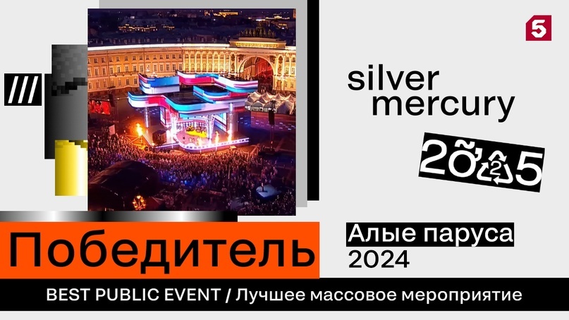 Концертная часть праздника выпускников «Алые паруса» получила серебряную награду одной из главных креативных премий России «Серебряный Меркурий». Награда получена в номинации «Лучшее массовое мероприятие». Праздник выпускников «Алые паруса» - волшебная традиция Санкт-Петербурга с многолетней традицией. Легендарный выпускной был возрожден в 2005 году по инициативе Акционерного Банка «РОССИЯ», Правительства Санкт-Петербурга и Пятого канала. Пятый канал несколько лет подряд является организатором водно-пиротехнического шоу. Также с 2005-го он бессменно обеспечивает прямую телевизионную трансляцию праздника. За постановку концертной части на Дворцовой площади отвечает ивент-агентство «ERA». Михаил Колпахчиев, главный режиссер-постановщик водно-пиротехнического шоу «Алые паруса»: «Алые паруса» - это не просто невероятно красивое и масштабное событие, которое стремятся увидеть миллионы людей. Для команды, которая создает этот праздник, он является способом сохранения вечной молодости. Мы ста