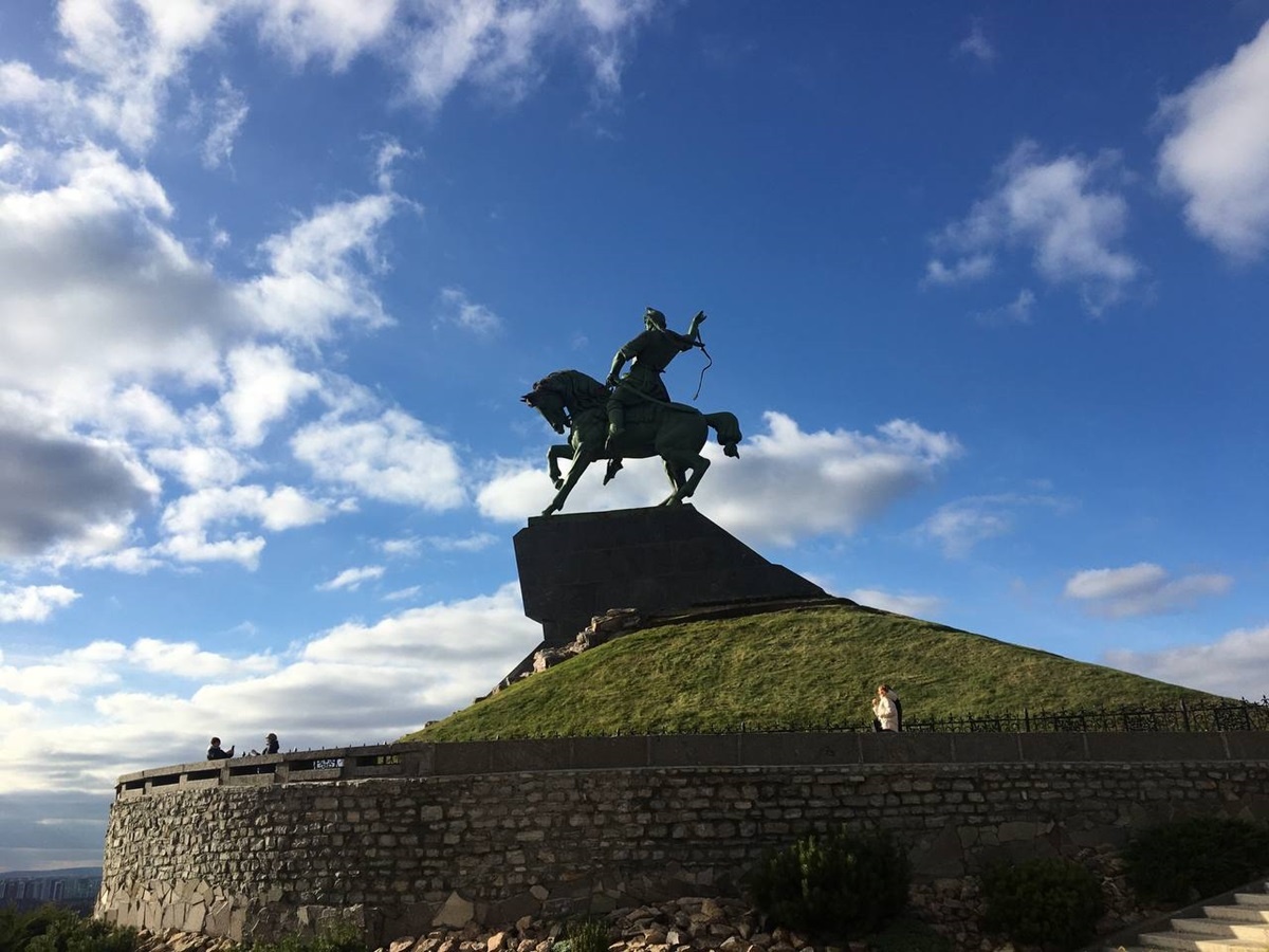 Но главная уфимская достопримечательность — памятник Салавату Юлаеву. Его видели многие, даже те, кто не был в Уфе: когда едешь в сторону Урала и дальше на поезде, он гордо возвышается на высоком обрыве и виден издалека. Вблизи памятник тоже очень классный — живой, динамичный, так и кажется, что сейчас пустится вскачь на коне. Рядом с памятником — большая прогулочная зона с сувенирными киосками и видом на Белую реку.