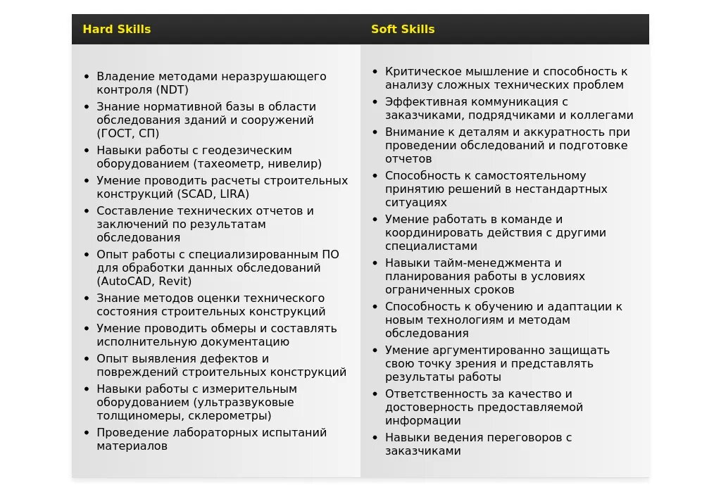 - Обязательная информация:Ваша ключевая квалификация (например, "опытный инженер по обследованию зданий и сооружений").