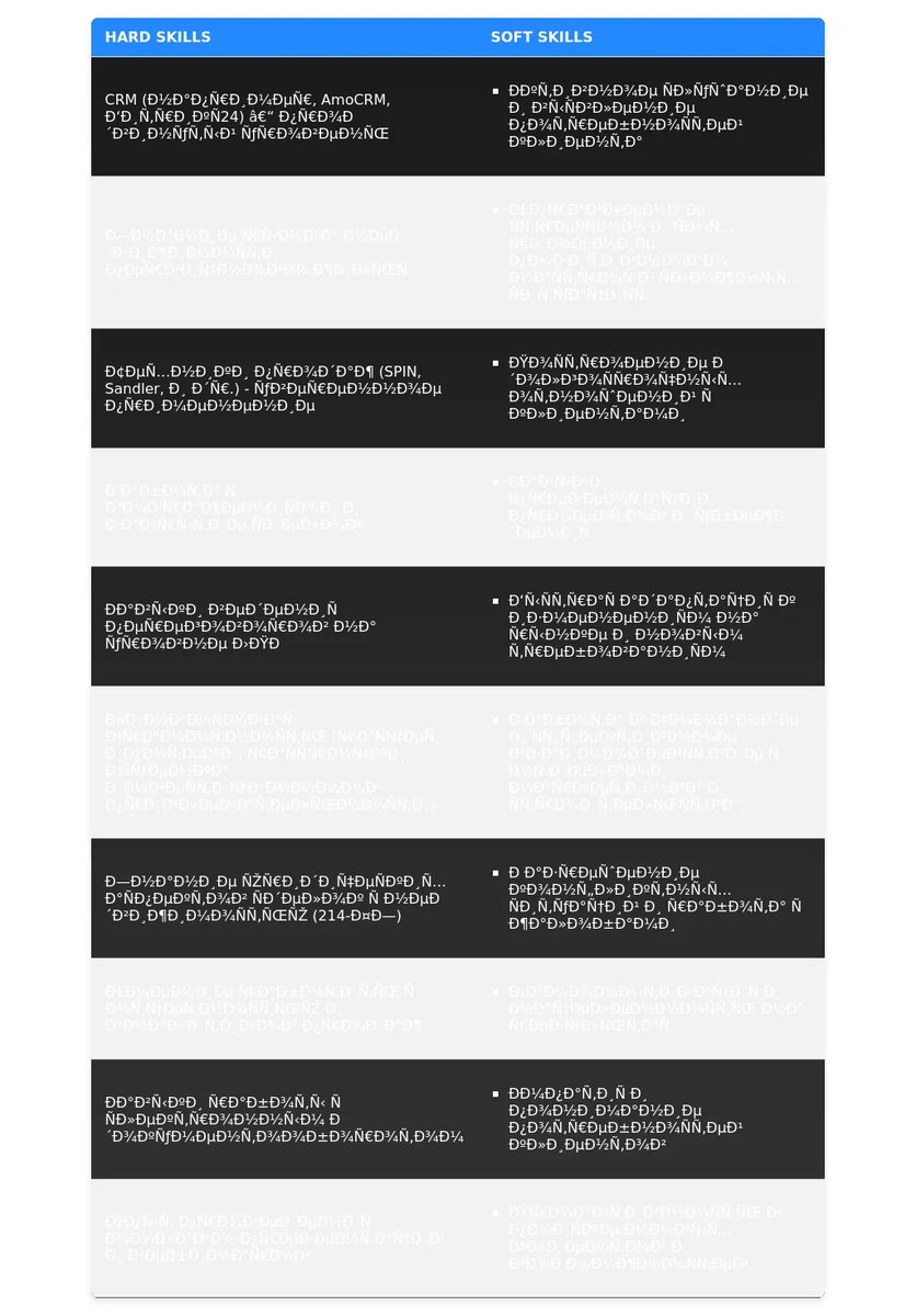 - Используйте конкретные примеры и количественные показатели для подтверждения своих достижений (например, "увеличил объем продаж на 20%", "заключил 50 сделок", "привлек 10 новых клиентов").