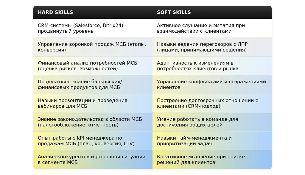 Адаптация раздела "Навыки" для менеджера МСБ
