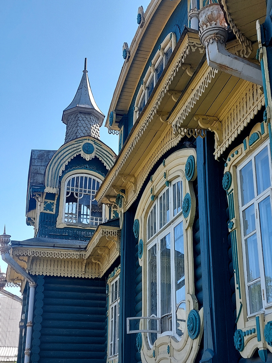 Построен в 1902 году для семьи Михаила Шорина, который проживал здесь с женой и четырьмя детьми. Округлая башня — гнутые брёвна. До сих пор остается загадкой, как такое смогли сотворить в XIX веке мужики без образования.