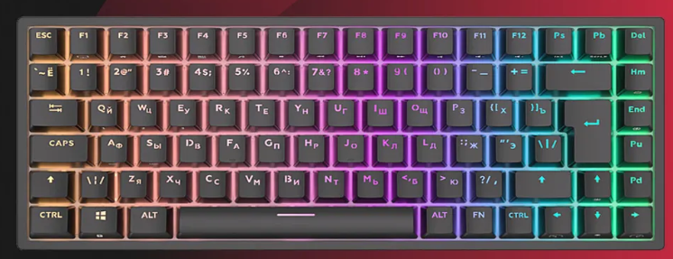 Клавиши PBT устойчивы к истиранию, а двойные светодиоды обеспечивают яркую RGB-подсветку с настройкой эффектов.