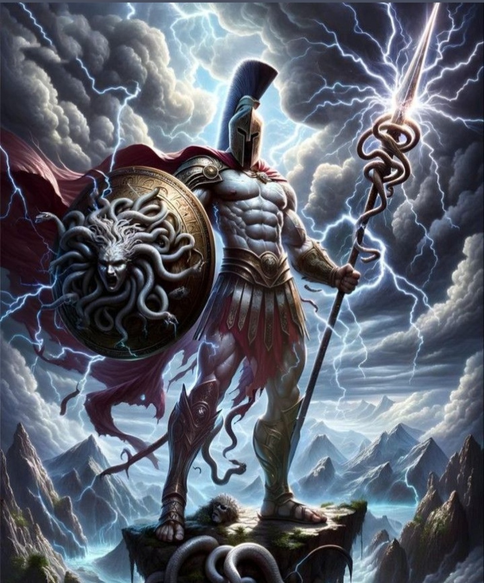 Персей был сыном Зевса и царевны Данаи, которую ее отец Акрисий заточил в медную башню, пытаясь избежать предсказания о смерти от руки внука. Однако Зевс проник к Данае в виде "золотого дождя", после чего родился Персей. В страхе Акрисий посадил мать с младенцем в ящик и бросил в море. Волны принесли их к острову Сериф, где их спас рыбак Диктис. Хотя Персей не был богом, он находился под особым покровительством олимпийцев: - Афина дала ему polished щит (как зеркало) - Гермес подарил острый серповидный меч - Нимфы предоставили шапку-невидимку, крылатые сандалии и волшебную сумку - Гефест создал adamantine меч для битвы По приказу царя Полидекта Персей отправился за головой Медузы. Используя щит как зеркало, чтобы избежать ее взгляда, он обезглавил спящее чудовище. Из крови Медузы родились крылатый конь Пегас и великан Хрисаор. На обратном пути Персей увидел прикованную к скале Андромеду, которую должны были принести в жертву морскому чудовищу. Используя голову Медузы, он обрат