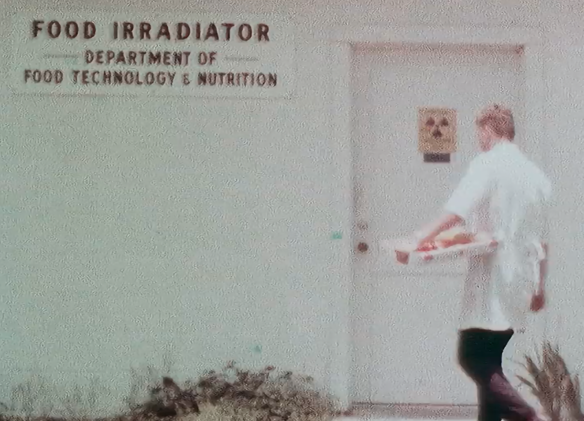 Сначала — немного контекста. США, 1956 год. В это время особенно остро встал вопрос длительного хранения еды, в том числе — в условиях радиационного заражения. Один из методов, который тогда активно тестировали, — стерилизация продуктов гамма-излучением. Всё просто: закатал банку, облучил посильнее и жизни внутри не осталось.