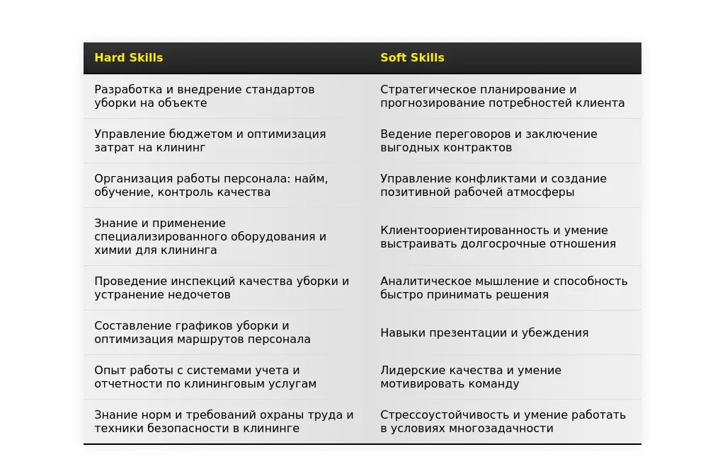 - ✅ Актуальные требования работодателей и список востребованных навыков для менеджера объекта по клинингу.
