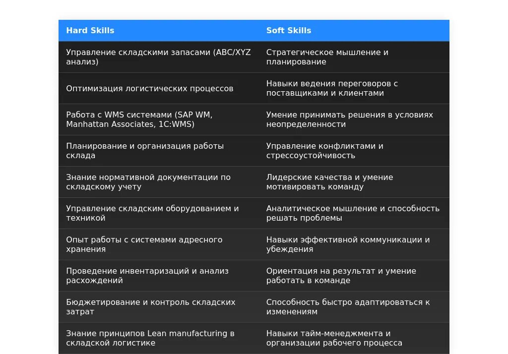 - На какие качества и навыки делать акцент: Аналитические способности, внимательность к деталям, умение работать в команде, знание складского учета и логистики.