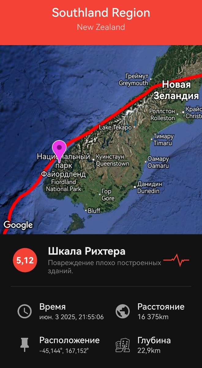 В ответ на пост Землетрясение М5+ в Новой Зеландии (см. рис. 1) произошло через 9 часов после сегодняшнего предупреждения на данном канале. На основании текущей картины над островами и к северу от них (см. фото 3-4) есть вероятность более сильного продолжения сейсмики на уровне М6+. ==== The M5+ earthquake in New Zealand (see photo 1) occurred 9 hours after today's warning on this channel. Based on the current picture above the islands and to the north of NZ (see photos 3-4), there is a possibility of a stronger continuation of seismic activity at the M6+ level.