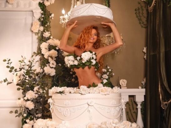 Модель разместила откровенные фото. Она залезла в гигантский торт. Вместо одежды интимные места прикрывают цветы. Котова игриво позирует на камеру.
