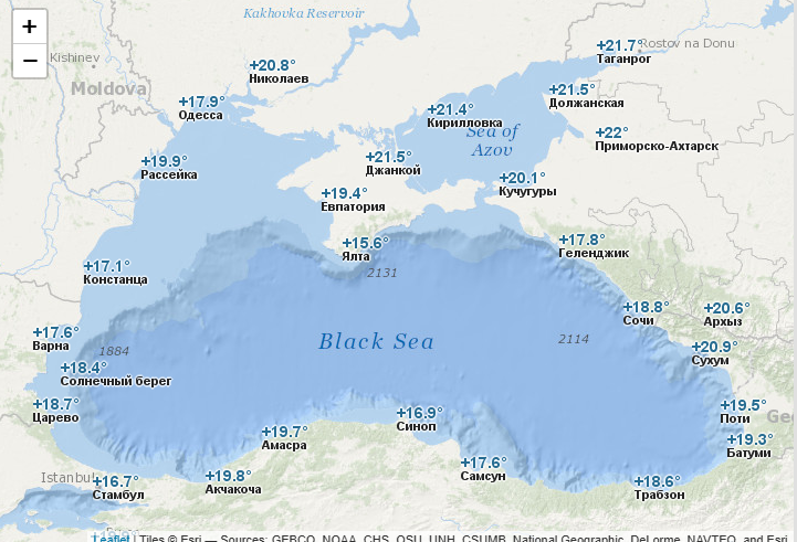 Температура воды по курортам Черного моря в июне 2025
