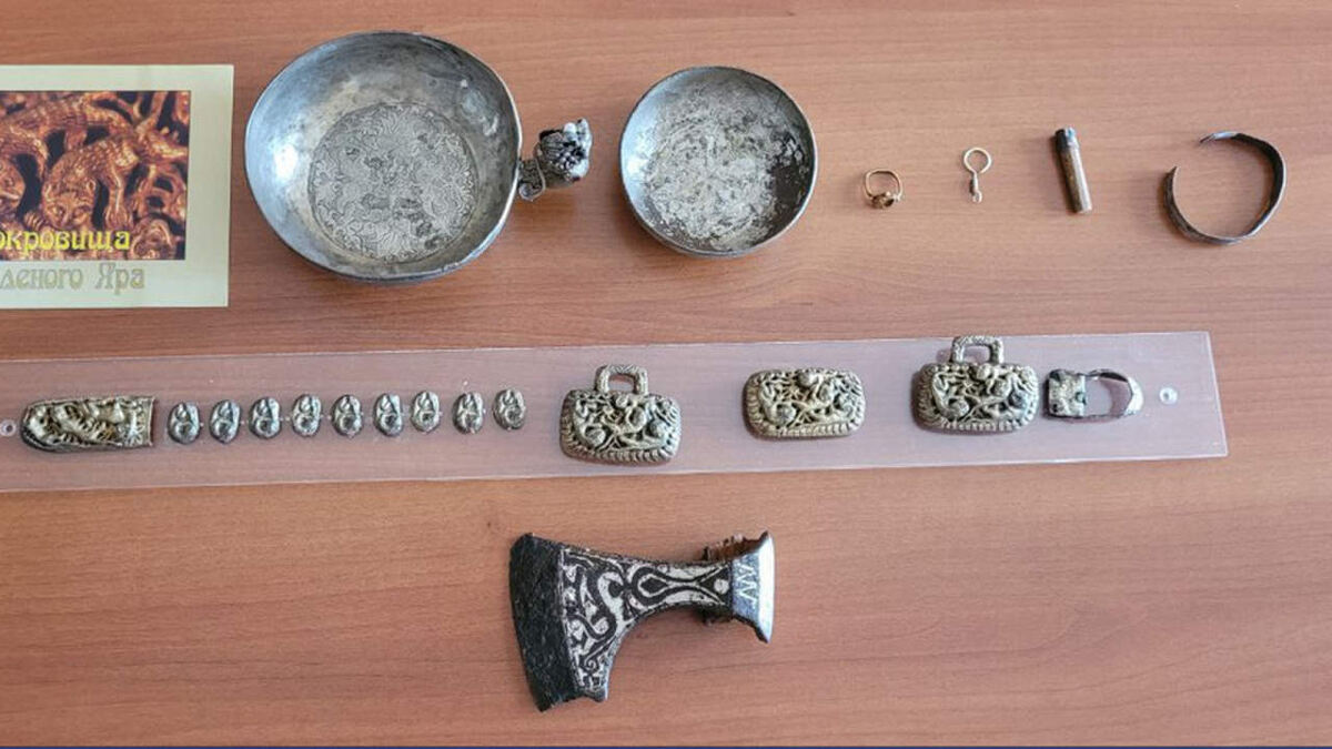Среди наиболее значимых находок – украшенный топорик, символизирующий власть, серебряные ковши, один из которых имеет ручку в форме дракона, а также позолоченный пояс, кольцо, браслет и золотая серьга. Эти находки указывают на высокий социальный статус погребённых, являвшихся представителями кочевой аристократии Золотой Орды. Предметы переданы в музей археологии ВГУ.
