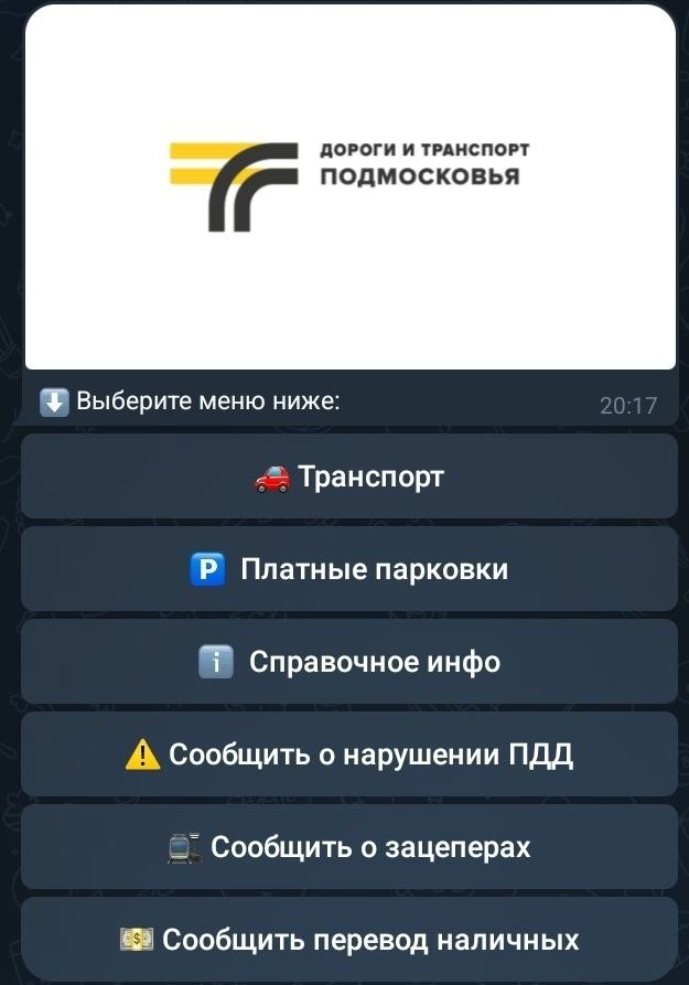 У Минтранса Подмосковье появился бот, через который можно сообщить о зацеперах. Информация уйдет напрямую в полицию👌