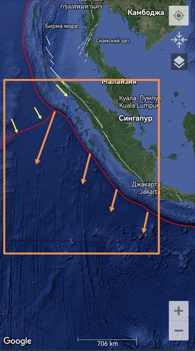 Не всё я понял в текущей картине у Суматры. Не ясно сильное смещение границы плиты Sunda на юго-запад (если это именно она спроецировалась, конечно...). С севера считываются контуры местной рифтовой зоны, а вот юг сильно уехал на Австралийскую плиту. В общем, хорошего мало, конечно. Вернее - его нет совсем 🤷 Похоже, что у Суматры очередной ОСТИ на М8+ сформировался.