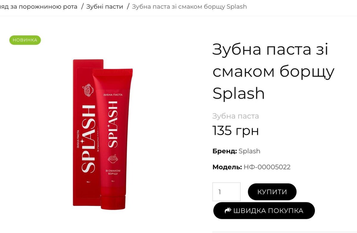 Тем временем на Украине выпустили зубную пасту со вкусом борща. Стоимость сего шедевра — 135 грн (255 руб.).