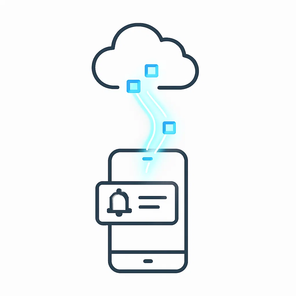 - Сервер приложения отправляет сигнал в облачный сервис (например, Firebase для Android, APNs для iOS)