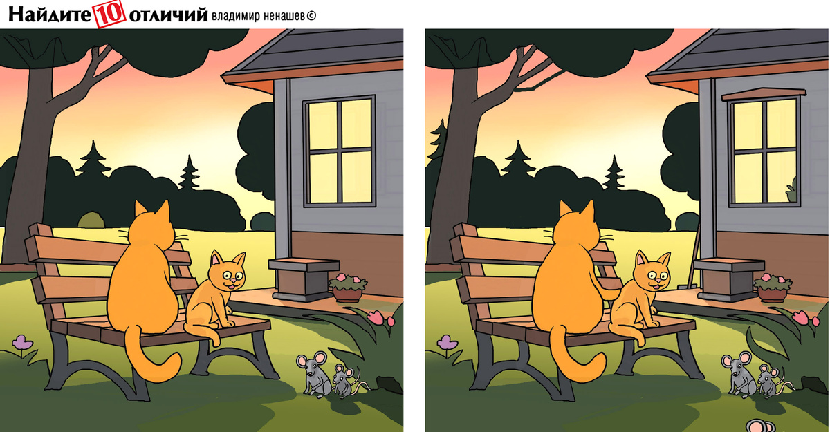 10 отличий и загадка на внимательность. Отдыхайте и улучшайте память. Позитив.