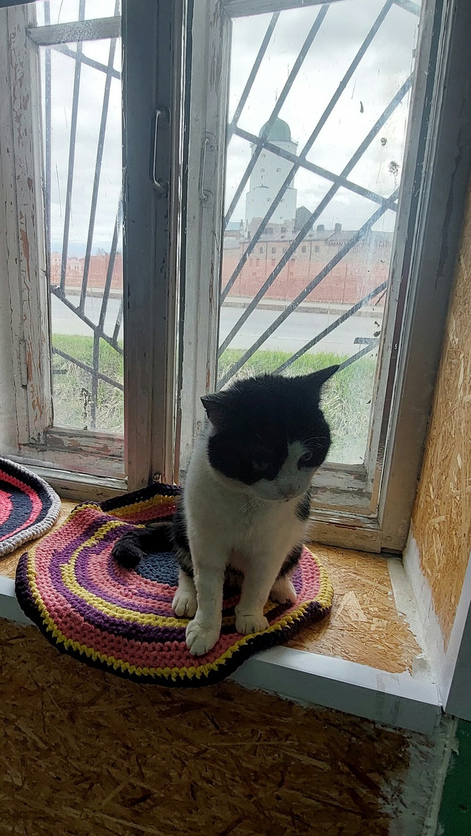 Организаторы ещё называют его «Антикафе», т.е. кормят здесь только кошек. Вход и общение с усатыми-полосатыми платное, на содержание питомцев. Посетители могут купить сувениры в соседней мастерской. Адрес – Выборг, Петровская набережная, 11. Из окон виден Выборгский замок. Здесь нашли приют кошки с трудной судьбой. Имена называют, но к сожалению, я мало чьи запомнила.