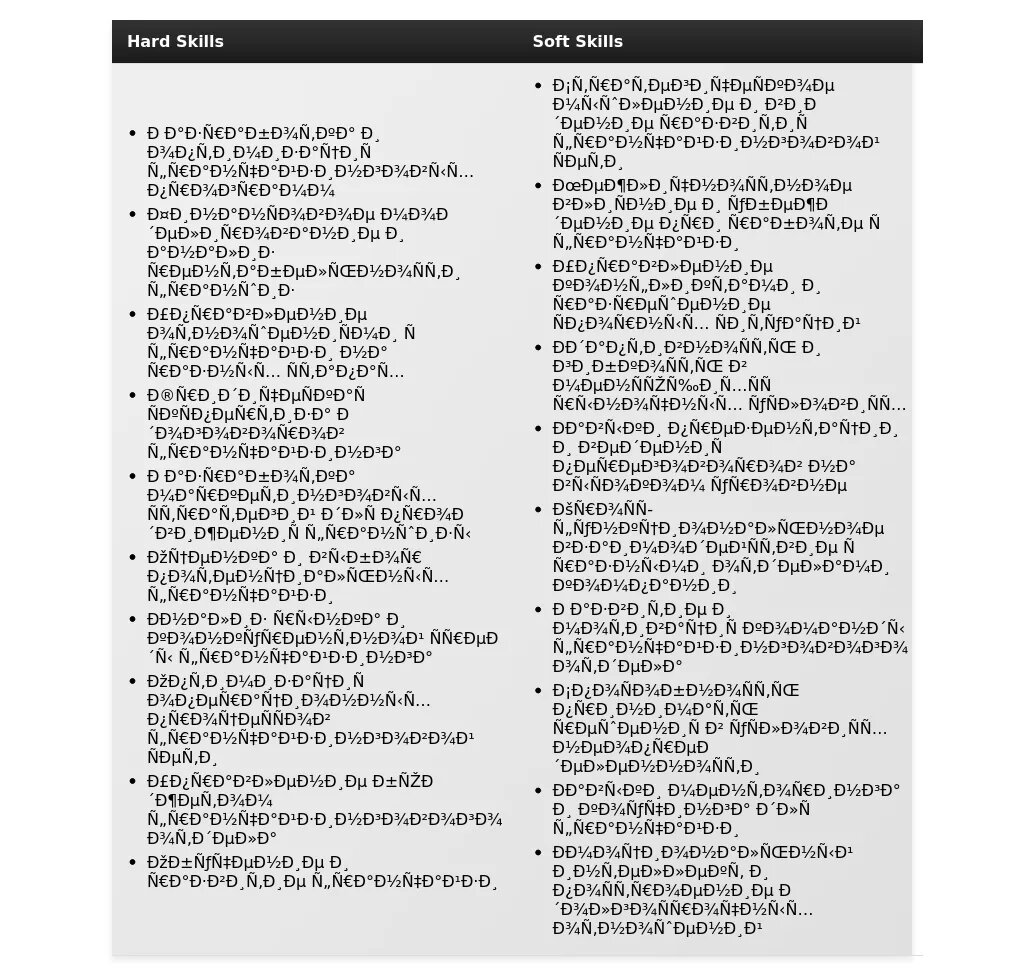 Раздел "Навыки" – это возможность показать работодателю, какими компетенциями вы обладаете и что умеете делать лучше всего. Важно, чтобы этот раздел был максимально релевантным требованиям вакансии.