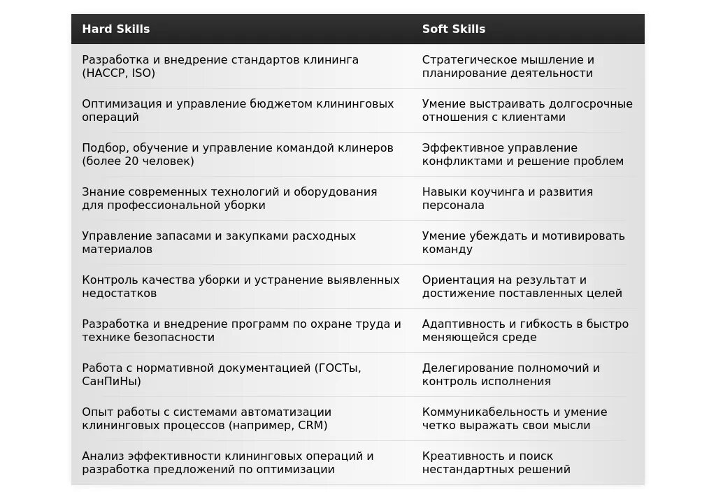 Адаптация раздела "Навыки" для ведущего менеджера по клинингу
