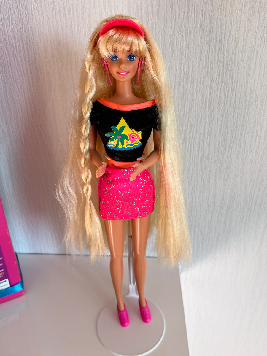 1993 год выпуска, Малайзия 🇲🇾 Очень мне хотелось попробовать заказать куколку через лот из США😁 В итоге ждала пол года 😰 Когда получила, показалось, что состояния хорошее. Даже снимала распаковку для ютуба и радовалась. Но немного шелушилась нога. Я подумала, что чуть оторву эту шелушку и будет норм. Результат на фото 😭 В итоге я просто купила другую куклу 😒 Так что вот у этого выпуска может быть недостаток в виде слезающей резины. У моей есть намеки на шелушения, поэтому стараюсь на нее не дышать 😁 От волос не восторге, я их мыла с бальзамом, вычесывала, но они все равно жестковаты и жирноваты, тк материал саран. Пока расчесывала, вылезло прилично 🥺 Что аж лень было уже кипятком поливать, наверное поэтому они не идеально гладкие. Кстати трусики у кукол этого выпуска всегда разные попадаются. У моей белые, но без узоров. Чаще бывают с узорами. А у индонезии могут быть с узорами но телесные. Еще один недостаток: блестки с юбки легко слетают 🙁 В тг девушка рассказывала, чт