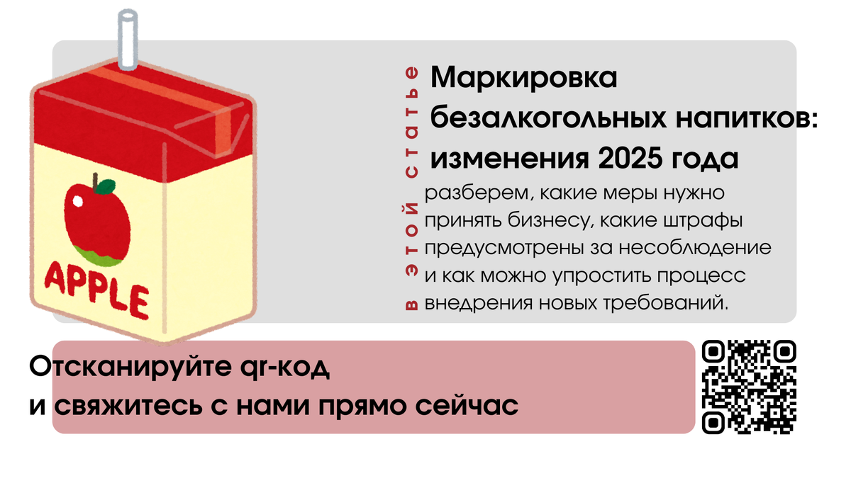 С 5 февраля 2025 года для ряда безалкогольных напитков вводится обязательная онлайн-проверка при продаже. Это требование прописано в подпункте «а» пункта 3 Постановления № 887. Новые правила касаются предпринимателей, реализующих определенные категории безалкогольных напитков, и предполагают обязательную проверку продукции через кассу. Обязательная онлайн-проверка при продаже Теперь кассовые аппараты должны проверять данные о безалкогольных напитках в режиме реального времени через систему учета. Это аналогично системе «Честный знак» для других категорий товаров. Алгоритм работы: 1. Кассир сканирует код маркировки на упаковке 2. Кассовое ПО отправляет запрос в систему «Честный знак». Если код действительный и товар можно продавать, формируется чек. Если код не прошел проверку — продажа запрещена. Какие напитки подпадают под новые требования? В перечень входят категории соковой продукции и безалкогольных напитков, которые указаны в Постановлении № 887: Точный список лучше сверять с офи