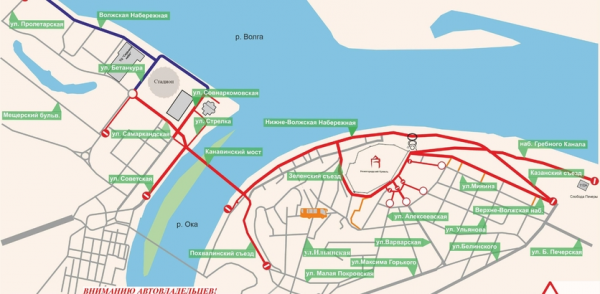 Автобусы А-22, А-26, А-41, А-43, А-78 в направлении нагорной части города будут ходить по метромосту, улицам Одесской, Максима Горького, Ильинской, Маслякова, площади Максима Горького. В направлении заречной части города – по площади Максима Горького, улицам Максима Горького, Ильинской, Малой Покровской, Малой Ямской, Максима Горького, Одесской и метромосту.