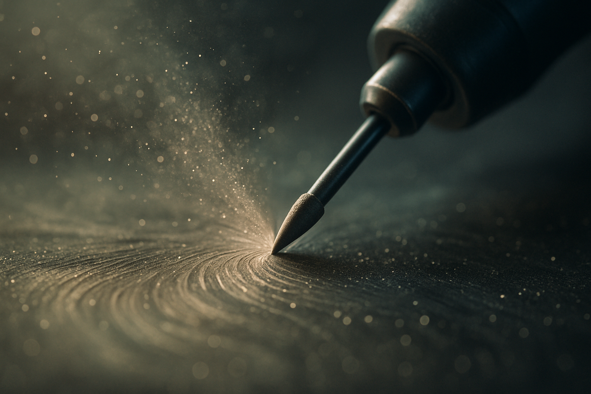 - Шлифовка и полировка: Когда нужно обработать мелкие детали или труднодоступные уголки, гравер работает там, где крупные машины не подходят. Особенно удобно им доводить края до совершенства или устранять небольшие дефекты.