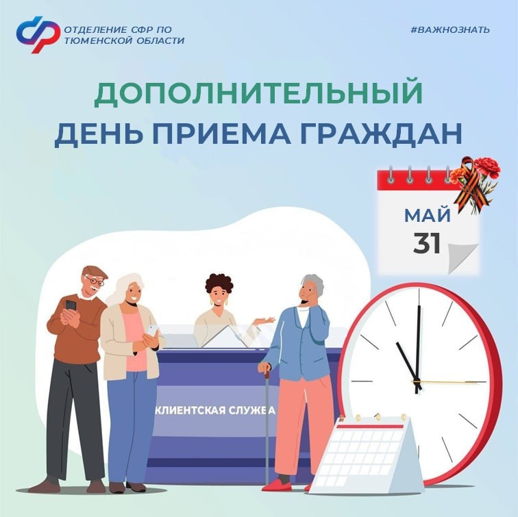 Π ΡΡΠΎΡ Π΄Π΅Π½Ρ Π²Ρ ΡΠΌΠΎΠΆΠ΅ΡΠ΅ ΠΏΠΎΠ»ΡΡΠΈΡΡ ΠΊΠΎΠ½ΡΡΠ»ΡΡΠ°ΡΠΈΠΈ ΠΏΠΎ Π²ΡΠ΅ΠΌ Π²ΠΎΠΏΡΠΎΡΠ°ΠΌ ΠΈ ΡΡΠ»ΡΠ³Π°ΠΌ, ΡΠ²ΡΠ·Π°Π½Π½ΡΠΌ Ρ ΠΏΠ΅Π½ΡΠΈΠΎΠ½Π½ΡΠΌ ΠΈ ΡΠΎΡΠΈΠ°Π»ΡΠ½ΡΠΌ ΠΎΠ±Π΅ΡΠΏΠ΅ΡΠ΅Π½ΠΈΠ΅ΠΌ. Π Π΄ΠΎΠΏΠΎΠ»Π½ΠΈΡΠ΅Π»ΡΠ½ΡΠ΅ Π΄Π½ΠΈ ΠΏΡΠΈΠ΅ΠΌΠ° Π² Π’ΡΠΌΠ΅Π½ΡΠΊΠΎΠΉ ΠΎΠ±Π»Π°ΡΡΠΈ ΡΡΠ½ΠΊΡΠΈΠΎΠ½ΠΈΡΡΠ΅Ρ 22 ΠΎΡΠΈΡΠ° ΠΊΠ»ΠΈΠ΅Π½ΡΡΠΊΠΎΠ³ΠΎ ΠΎΠ±ΡΠ»ΡΠΆΠΈΠ²Π°Π½ΠΈΡ ΠΏΠΎ ΡΠΏΠ΅ΡΠΈΠ°Π»ΡΠ½ΠΎΠΌΡ Π³ΡΠ°ΡΠΈΠΊΡ (ΠΏΠΎΠ΄ΡΠΎΠ±Π½Π΅Π΅ Π² ΠΊΠ°ΡΡΠΎΡΠΊΠ°Ρ