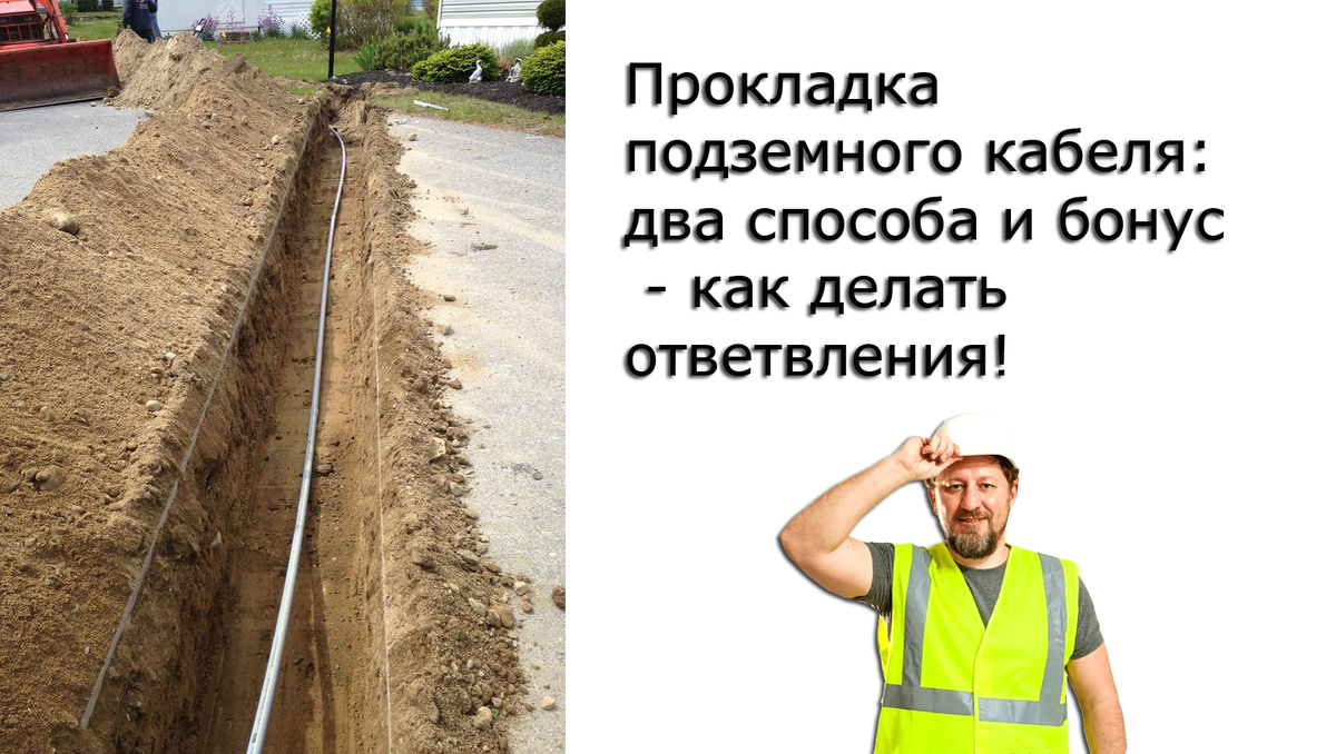 Для прокладки кабеля под землёй нужно соблюсти несколько важных требований - я расскажу главное, что вам нужно знать, если вы собираетесь прятать электричество под землю - читайте до конца! Выберите место, где никто ничего не будет копать, например под пешеходной дорожкой. С помощью шнурка разметьте трассу - лучше всего, если она будет прямой и вдоль той же самой дорожки. Выкопайте траншею глубиной не меньше 0,7 метра. Засыпьте траншею песком, чтобы получилась песчаная подушка. Уложите в траншею бронированный медный кабель ВбШВ с нужным количеством жил и нужным сечением, например для питания уличных фонарей хватит ВбШВ 3х2,5. Старайтесь укладывать кабель не в натяг, лёгкой волной, чтобы у него был запас на растяжение. После укладки засыпьте траншею землёй, просеянной от камней и мусора и слегка утрамбуйте. Вот и всё. Вместо бронированного кабеля (остальные требования остаются) используется обычный кабель ВВГ, затянутый в жёсткую ПНД трубу. Лет 10 назад это давало экономию примерно в 1