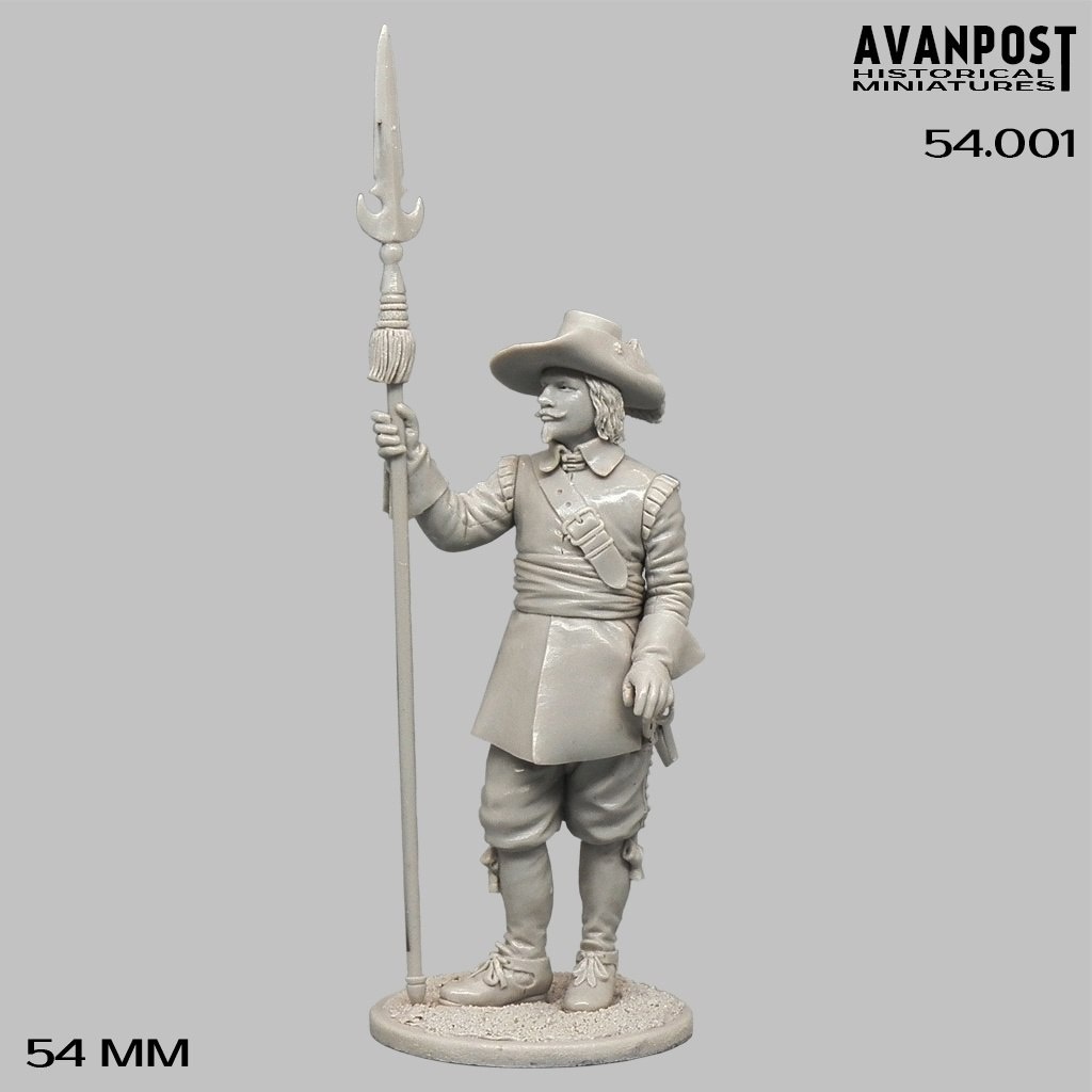 Avanpost из Севастополя отливает из полиуретановой смолы фигуры в новом для себя масштабе 1/32 (54 мм): 54.001 Пехотный офицер XVII век 54.002 Знаменосец XVII век 54.003 Барабанщик XVII век
