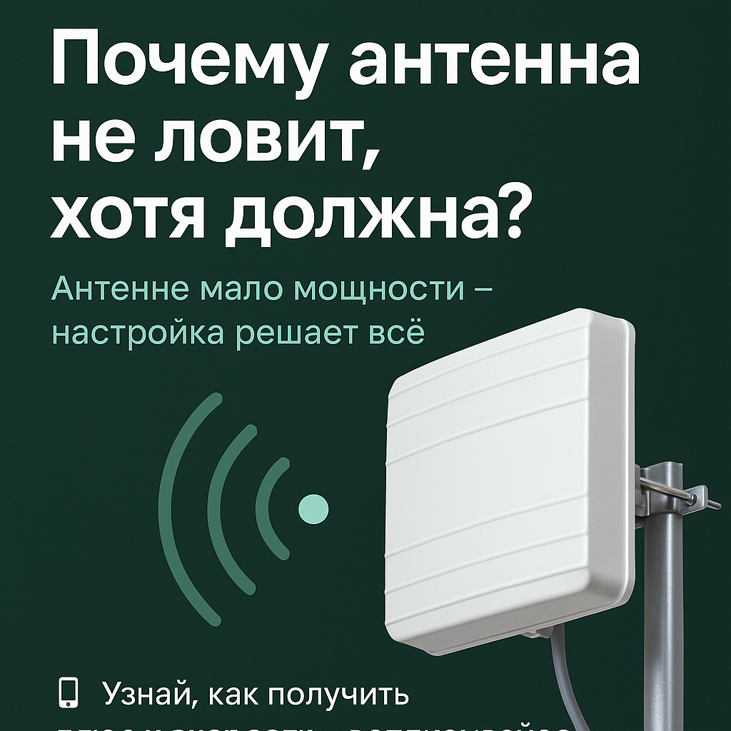 📡 Вы поставили антенну, но сигнал не улучшился? Такое случается часто. И причина — не в антенне как таковой. Даже мощное оборудование не даст результата, если не соблюдены базовые условия. 🛠 На практике качество приёма зависит от множества факторов: Если у вас всенаправленная антенна — не ждите чуда. Она ловит сигнал со всех сторон, но слабо. Панельная или направленная антенна — эффективнее, но требует настройки. 📌 Антенна не решит проблему, если выбрана неправильно или установлена на глаз. Хотите стабильный интернет — начните с анализа местности и частот. 📲 Подробные инструкции, помощь в выборе и настройке — в нашем 👉Telegram