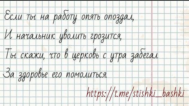 Про оправдание #берегитеначальство #стишкиизбашки Стишок каждый день для настроения @stishki_bashki 📹 - видеостишки тут 👈 🙊 - а тут можно комментировать 👈 Поделитесь стишком с друзьями