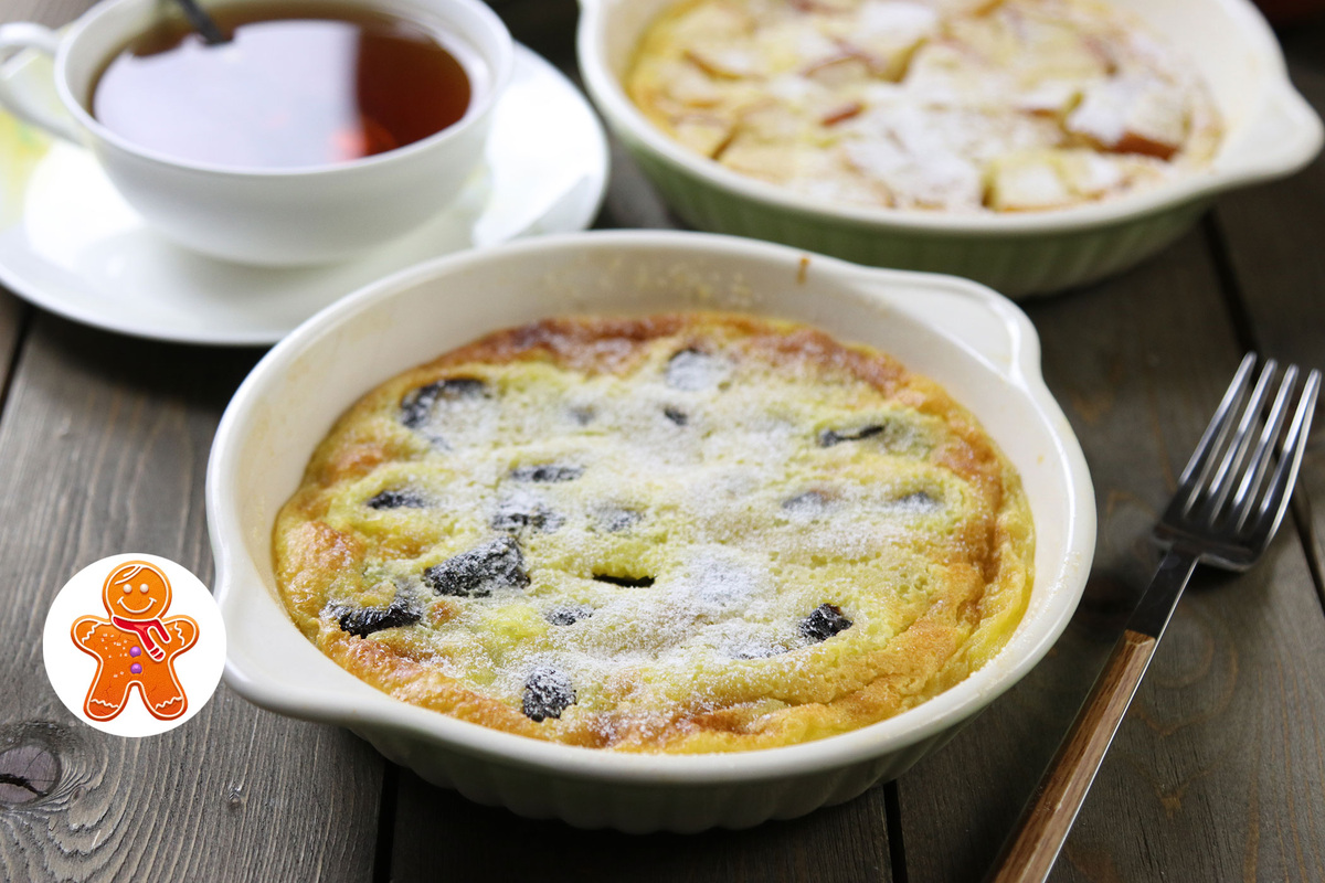 Это традиционный французский десерт, который в классическом варианте готовят со свежей вишней, а также можно готовить и с другими свежими ягодами и фруктами. Их заливают жидким тестом, запекают и подают в горячем виде. Посыпают сахарной пудрой, добавляют шарик мороженого или взбитые сливки. Клафути принято считать летним десертом, но приготовить его можно, конечно же, не только летом, можно приготовить и зимой. Для этого подойдут и замороженная вишня, и другие ягоды из морозильной камеры, а также можно взять яблоки или груши. Готовится Клафути очень просто, быстро и легко, поэтому лично для меня это прекрасный вариант вкусного и полезного завтрака для всей семьи. Давайте приготовим! Для заливки:
