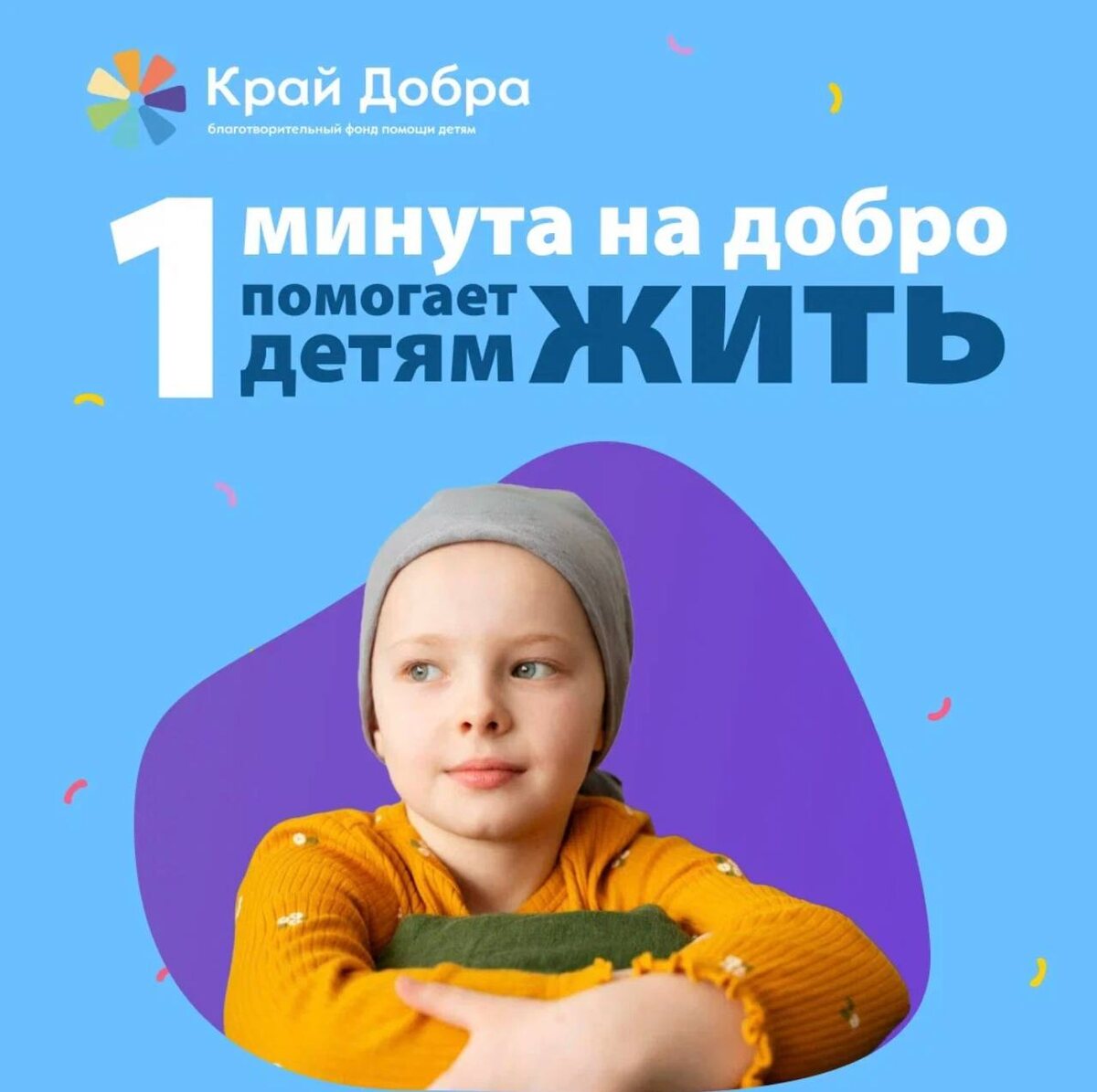 1 минута на добро = детская жизнь без боли 🙏 👧🏻В преддверии Международного дня защиты детей, на Кубани объявлен сбор средств для оказания помощи тяжелобольным детям. Принять участие в акции «1 минута на добро» может каждый. Для этого необходимо: ➡️зайти на сайт фонда «Край добра» ➡️выбрать на главной странице раздел с акцией «1 минута на добро» ➡️нажать кнопку «Помочь ребенку» ➡️отправить свое пожертвование. Также можно выбрать историю ребенка, который нуждается в помощи и адресно помочь ему. Детям необходимы средства на закупку дорогостоящих препаратов, курсов лечения и реабилитации. Вы можете подарить ребенку шанс на счастливую жизнь уже сейчас! 🩵